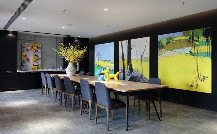 設(shè)計公司辦公室會議室設(shè)計:家具、畫、綠植、鮮花、樂器構(gòu)成一個迷人的空間,在這樣的空間中開展會議,靈感會無處不在。